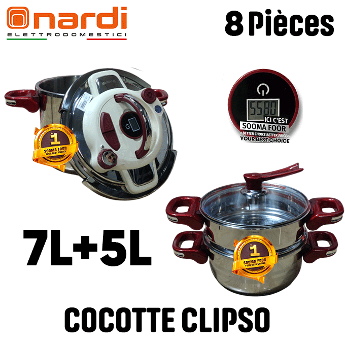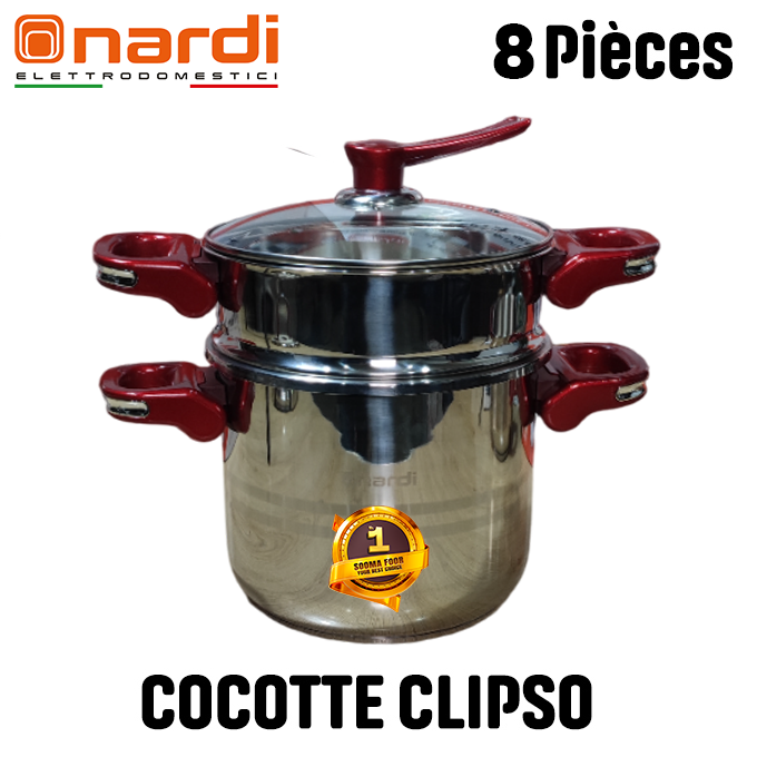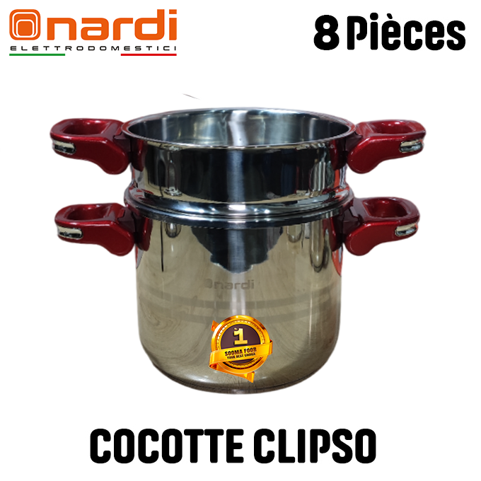 سومة فوور افضل خيار لكمNardi Cocotte 8 Pièces - inox 18/10 - 5+7 Litres CLIPSO + JOINT